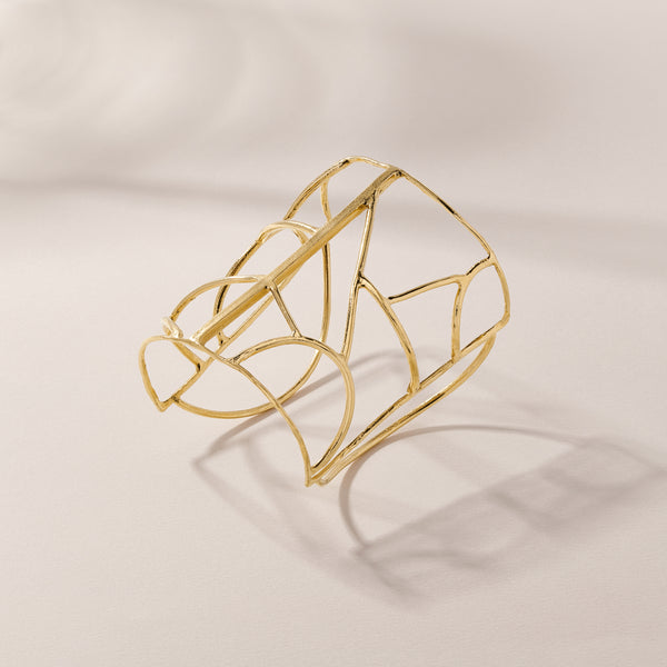 This bracelet is inspired by the shapes in the doors of an ancient woman's refuge. Throughout time, doorways and their guardians were known to be feminine symbols.