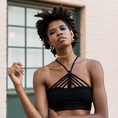 The Furiosa collection was made as modern armor for women. The challenges we face can make daily life feel like a battlefield and this collection is a reminder that you are a heroine both to yourself and the other women around you. It's meant to give you strength and is a reminder of the extraordinary power you hold. The collection is inspired by one of my favorite heroines, Furiosa from the movie Mad Max: Fury Road. In the film, Furiosa leads the charge for freedom, but the battle is fought collectively by a group of enslaved women and the allies they find along their way. The women discover their strength, find ways to weaponize their perceived weaknesses and fight for repossession of their own bodies. I took this opportunity to make what I think are some of my most powerful pieces yet, fit to adorn a warrior like Furiosa and a warrior like you.