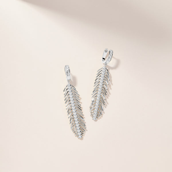 These are the cutest little feather earrings attached to a snake skin textured huggie that clicks easily into place. The wisps on each feather are bent individually to create a sense of movement, so no one pair is exactly alike.