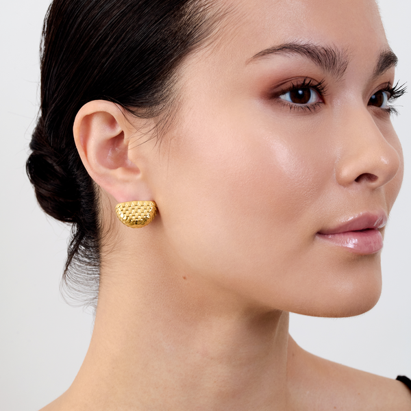 For the earrings in the Mythos collection, I used the Scale texture found in sacred carvings, and drawings to inspire the scales on the pieces. The Ear lobe cuff & Ear cuff paired together especially are inspired by traditional masks that Ancient Mesoamerican priests would wear representing Quetzalcoatl and other mythological figures during worship and celebrations.