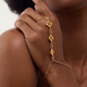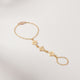 This hand chain was created by linking 3 of our signature Oberlin Star quilt charms to my favorite oval chain. Then I added a magnetic clasp, so that it is easy to put on with one hand and SUPER comfortable. The ring portion can fit ring sizes 5-10.