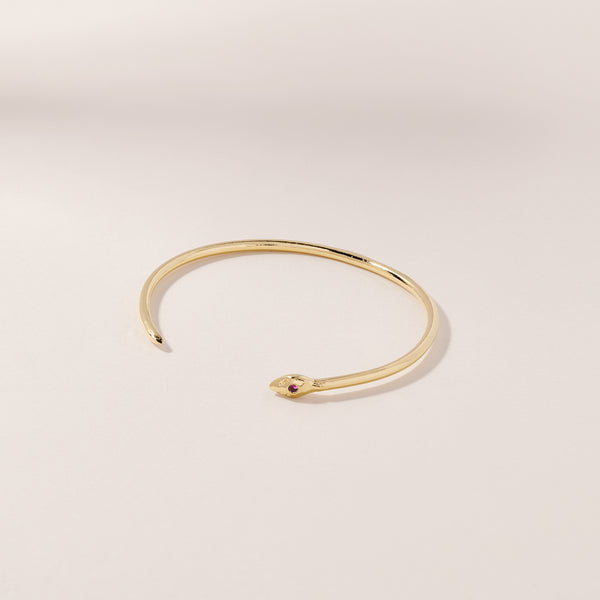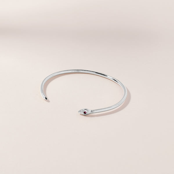 This snake inspired bracelet is your dream stackable bangle! It has a tiny birthstone set in each snake's head. Personalize it for your birth month or for the perfect gift.