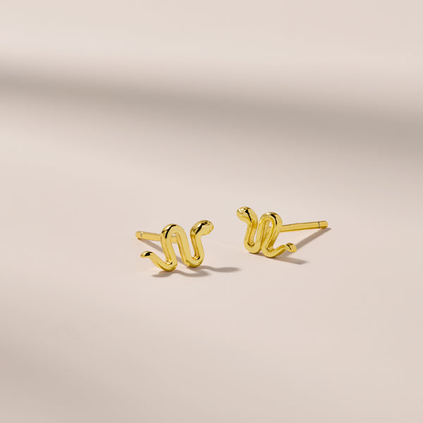 The tiniest gold snake stud earrings to add to your ear stack. These cute slithering snakes sit perfectly on the ear lobe. Hypoallergenic, nickel-free and great for sensitive ears.