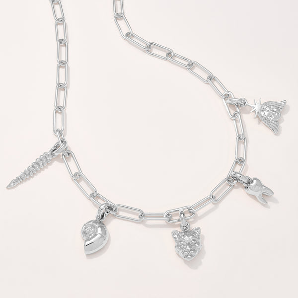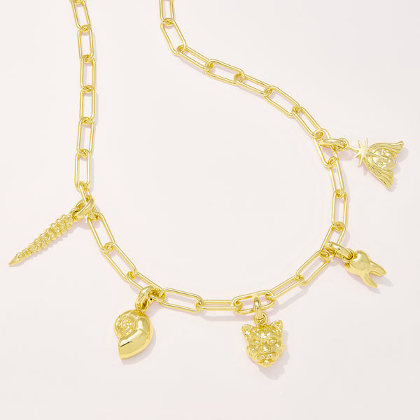 Add as many charms as you want to this chunky paperclip-style base chain (although we recommend 5-6 for a nicely spaced design). Simply press your charm’s hinged jump ring up against the chain’s link to attach it and start to create a design that's totally unique to you. This chain is ideal for making a fun statement necklace that will help you manifest all of your hopes and dreams.