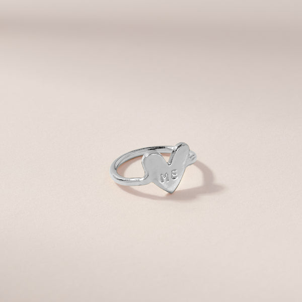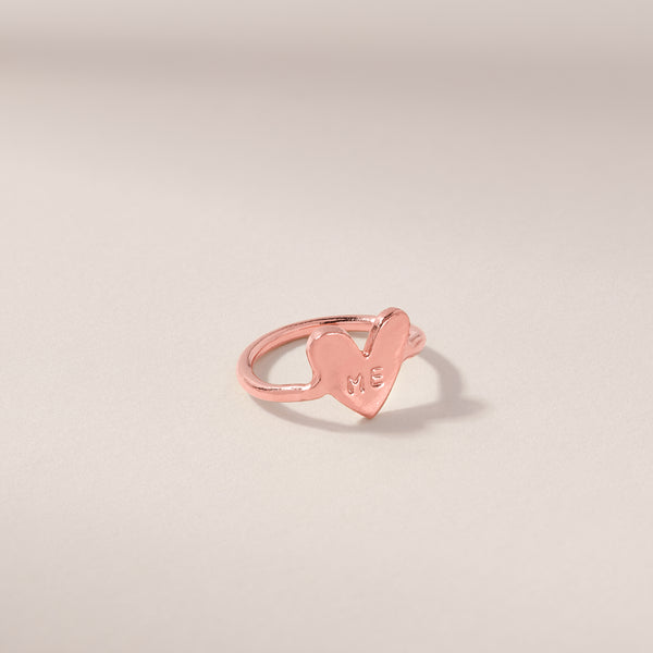 This tiny heart ring is hand stamped with "Me" and is perfect as a midi ring or a pinky ring. This design is the cutest little a reminder to love yourself each day.