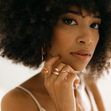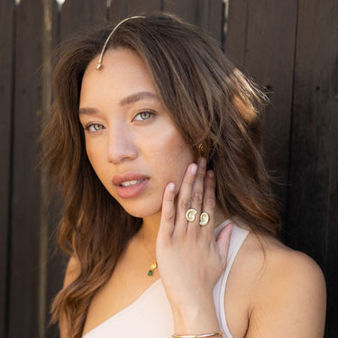 The Fortuna collection is inspired by the Roman God of luck. This collection is made to be modern talismans that will bring you good fortune when you wear them. Fortuna is always portrayed with a cloth covering their eyes, a reminder to ancient Romans that fortune is truly blind. The symbolism brought hope to the lower class, knowing that money or power could not sway luck.