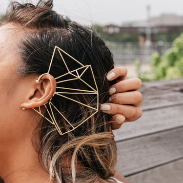 The Daughters of the West collection is inspired by the female outlaws of the Wild West. Born during a time when women stood in the shadows of their rugged men, the Daughters of the West proved that they were as good - if not better - than their male counterparts. Some of them became legends as outlaws and bandits, shocking society with their ruthless and unladylike behavior. In this collection I used traditional western motifs and folk art patterns to create old west style jewelry pieces with the Nina Berenato twist. I wanted this collection to be super editorial and high fashion, creating pieces that would sparkle in the sun, reminiscent of traditional oulaw dress like spurs, bolos, and elaborate gun holsters. I incorporated body jewelry like harnesses that drape accross your chest, hand jewelry that adorns the nails in an unusual way and earscapes that line the entire ear with southwestern shapes.