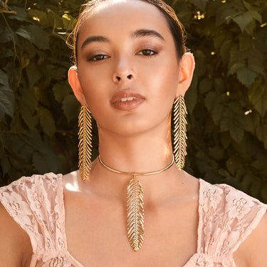 The Mythos collection is inspired by a statue of the Aztec creator god, Quetzalcoatl - a half snake, half feather covered God that Nina saw in the Museum of Anthropology in Mexico City. As feathered serpent deity, he symbolizes opposites, melting together. The destructive and developing earthly characteristics, represented by the snake, with the fertile and rendering forces of the heavens, represented by the bird. This duality is seen across cultures, in Greek mythology as Medusa the Gorgon with snakes for hair and in ancient Egypt, Wadjet, the winged serpent, protected the Pharaohs and controlled the waters of the Nile. This collection celebrates that polarity, remembering that we are not defined by just one characteristic, instead we are multidimensional people, finding a way to make our opposing attributes live in harmony.
