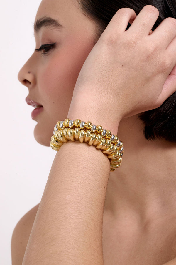The Caterpillar Bracelet is available in Yellow Gold, White Gold and Two-toned! These can be expanded to fit a larger wrist by gently pulling each side apart. They are hollow so although substantial, they are not too heavy.